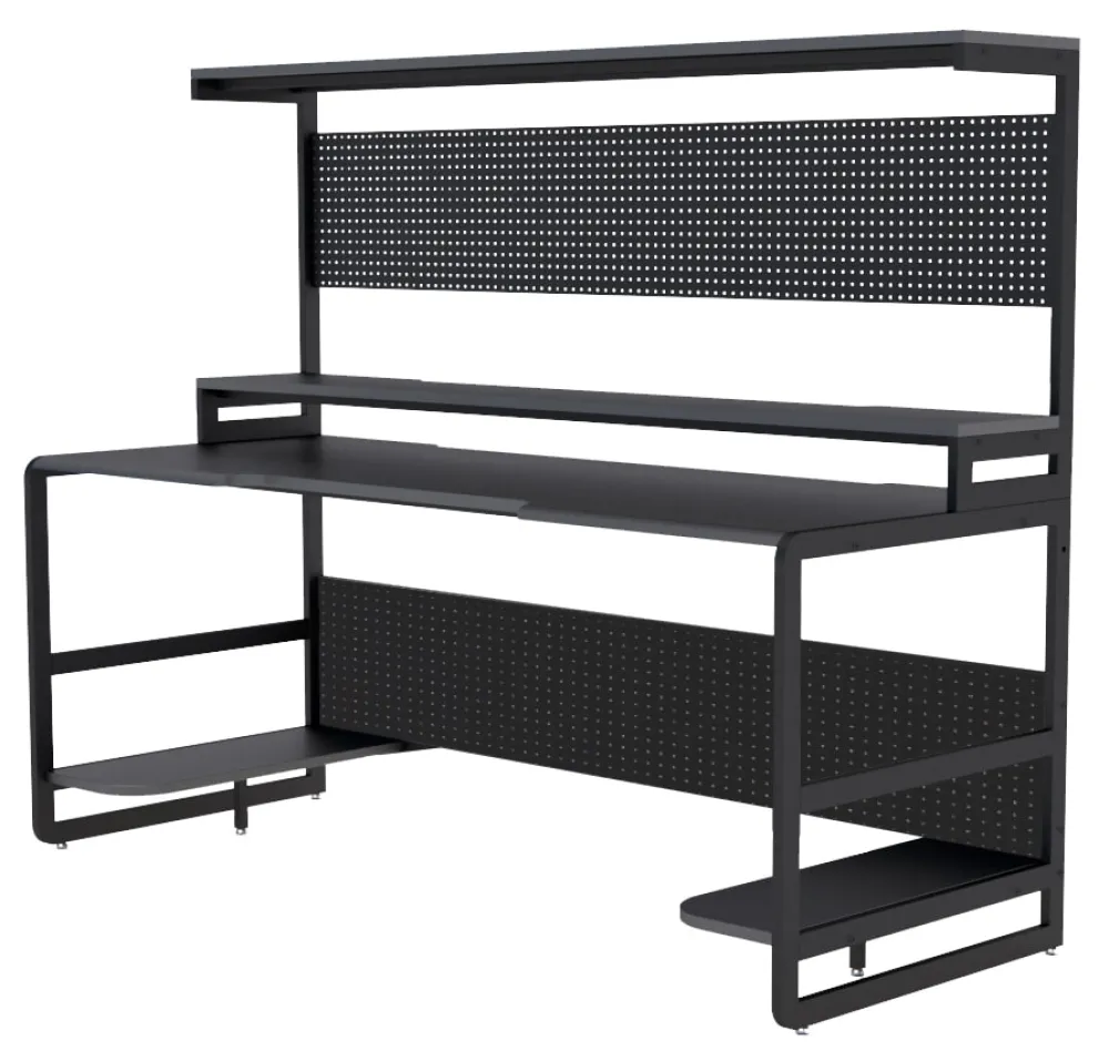 Dit zwart metalen bureau combineert tijdloos design met praktische functies. Het vierkante metalen frame zorgt voor stabiliteit en een moderne, elegante uitstraling. Een opvallend kenmerk van dit bureau is de verhoogde tower computerplank. Deze plank zorgt niet alleen voor een optimale luchtcirculatie voor de computer, waardoor de prestaties en levensduur van het apparaat verbeteren, maar maakt schoonmaken ook gemakkelijker. De verhoogde plaatsing houdt het vloeroppervlak onder het bureau vrij, waardoor het veel gemakkelijker is om stof en vuil te verwijderen. Het geïntegreerde geperforeerde blad dient als multifunctioneel prikbord. Notities, herinneringen en to-do lijstjes kunnen hier gemakkelijk worden bevestigd, waardoor de werkplek georganiseerd en overzichtelijk blijft. Met de extra monitorplank kan het scherm ergonomisch op ooghoogte worden geplaatst, wat nek- en rugklachten voorkomt. Het creëert ook extra ruimte op het werkblad voor documenten en kantoorbenodigdheden. Het zwart metalen bureau is niet alleen een stijlvol meubelstuk, maar ook een functionele metgezel in het dagelijks werk.