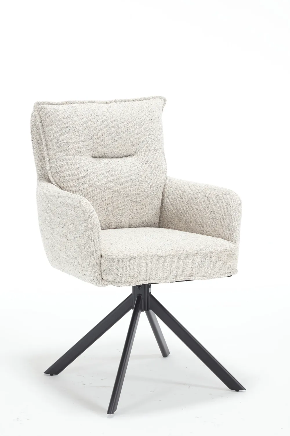 Elegantie en comfort in één: de gestructureerde stoffen draaistoel met pocketvering. De bekleding van structuurstof geeft de stoel een aantrekkelijke en moderne uitstraling. Structuurstof staat bekend om zijn duurzaamheid en veerkracht, waardoor het ideaal is voor dagelijks gebruik. Het voelt ook prettig aan en zorgt ervoor dat de stoel ook na urenlang zitten comfortabel blijft. Een ander groot voordeel van deze stoel is de draaifunctie. Hierdoor is het mogelijk om 360 graden vrij en zonder beperkingen te draaien, wat vooral gunstig is in een dynamische werkomgeving. De zitting van de stoel is voorzien van een pocketveren kern, die maximaal zitcomfort garandeert. Pocketveren passen zich individueel aan de contouren van het lichaam aan en bieden optimale ondersteuning voor de rug en het bekken. Deze technologie, die vaak wordt aangetroffen in matrassen van hoge kwaliteit, zorgt ervoor dat de druk gelijkmatig wordt verdeeld en dat je zelfs bij langdurig zitten geen vermoeidheidsverschijnselen voelt.