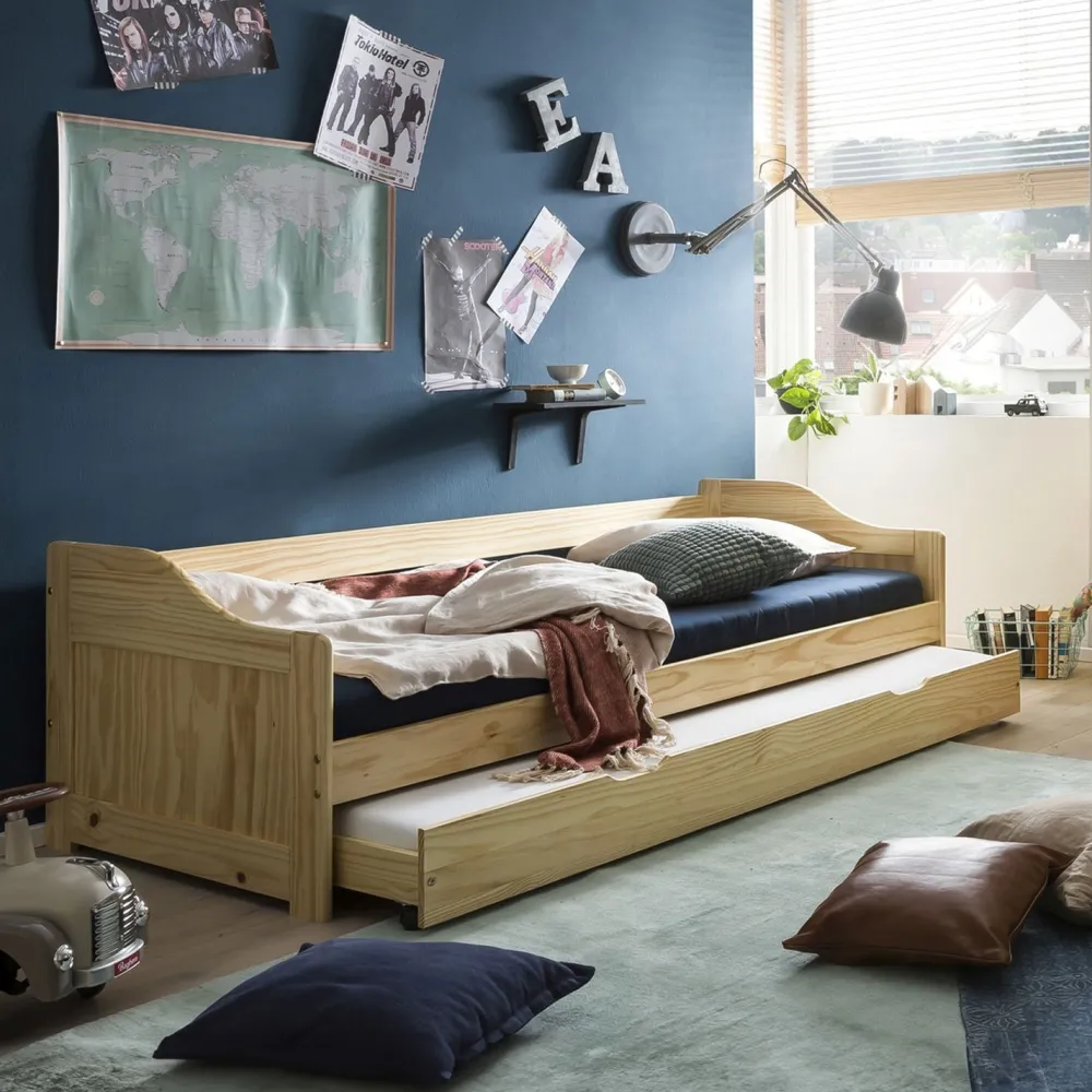 Het functionele bed heeft een ligoppervlak van 90 x 200 cm. In de uittrekbare lade, die op lichtlopende rollen loopt, is in een handomdraai een andere slaapmogelijkheid voor overnachtende gasten gecreëerd. Dit bed biedt voldoende ruimte en veiligheid om te slapen. De lattenbodems, die geschikt zijn voor een matrasmaat van 90×200 cm, worden meegeleverd. Dit eenpersoonsbed is perfect voor kamers met beperkte ruimte. Of het nu in de kinder- of logeerkamer is.