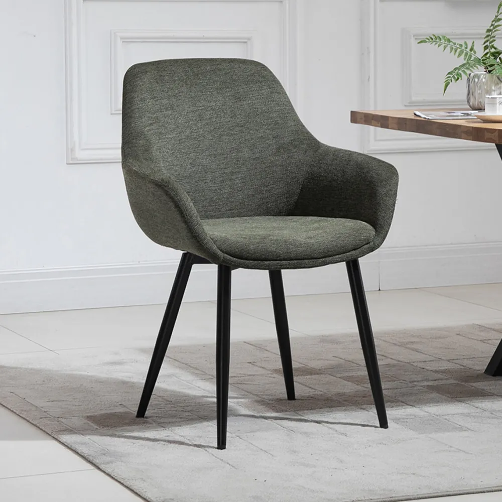 Elegantie en comfort hoeven niet altijd verschillend te zijn! De modieuze eetkamerstoel Matteo maakt indruk met zijn tijdloze vormgeving. De zitting, rugleuning en armleuningen zijn heerlijk behaaglijk bekleed met een lichtgrijze structuurstof. Met zijn matzwarte poten van gepoedercoat metaal staat de stoel stevig en creëert hij een harmonieus totaalbeeld in je kamers. Of het nu aan de eetkamertafel of aan de salontafel is, deze stoel is altijd de perfecte oplossing! Dankzij zijn tijdloze uiterlijk slaat hij ook een goed figuur als alleenstaande stoel, bijvoorbeeld in de slaapkamer of vrijstaand in de woonkamer.