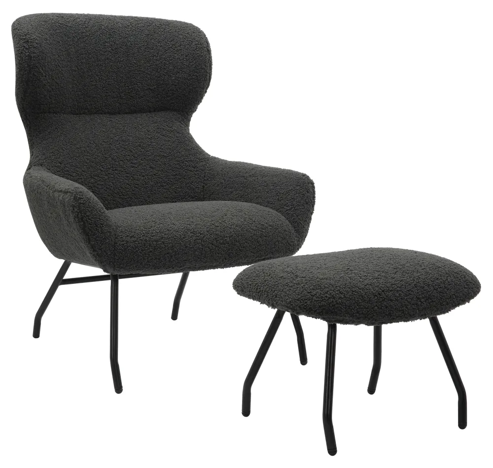 Deze fauteuil en poef set is niet alleen een blikvanger, maar ook een garantie voor ultiem comfort en een gezellige sfeer. Met zijn knusse teddybont-look hoes, hoogwaardige bekleding en stijlvolle details brengt hij net dat beetje extra in huis. De bekledingsstof van deze set is Oeko-Tex gecertificeerd en PFC-vrij, wat betekent dat het milieuvriendelijk is en vrij van schadelijke chemicaliën. De teddybont look geeft de fauteuil en poef een bijzonder knusse uitstraling en nodigt uit om te ontspannen. De bekleding bestaat uit een combinatie van polyetherschuim en pocketveren kern, die samen zorgen voor optimale ondersteuning en comfort. Of je nu achterover leunt op de fauteuil of je voeten omhoog legt op de poef, je zult genieten van het comfort van deze set. De gepoedercoate zwarte poten geven de fauteuil en poef een moderne en elegante uitstraling die past bij verschillende interieurstijlen.