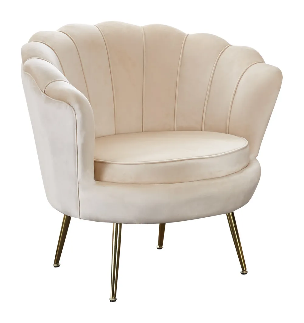 Ontsnap aan het dagelijks leven en geniet van een beetje time out. De moderne fauteuil in schelpdesign maakt indruk met zijn bekleding van fluweel en overtuigt met zijn afgeronde zit- en ruggedeelte. Het 4-poots frame van verguld metaal zorgt niet alleen voor een veilige stand, maar biedt ook een geweldig contrast met de bekleding van de fauteuil. Door de bekleding van zitting en rug, het hoge zitkussen en de stijlvolle vorm ervaar je eersteklas zitcomfort. De ronde vorm zorgt voor een zachte uitstraling. De fauteuil kan worden gebruikt in de woonruimte om te ontspannen of als zitplaats in de wachtruimte. Waar hij ook geplaatst wordt, deze fauteuil is een echte blikvanger.