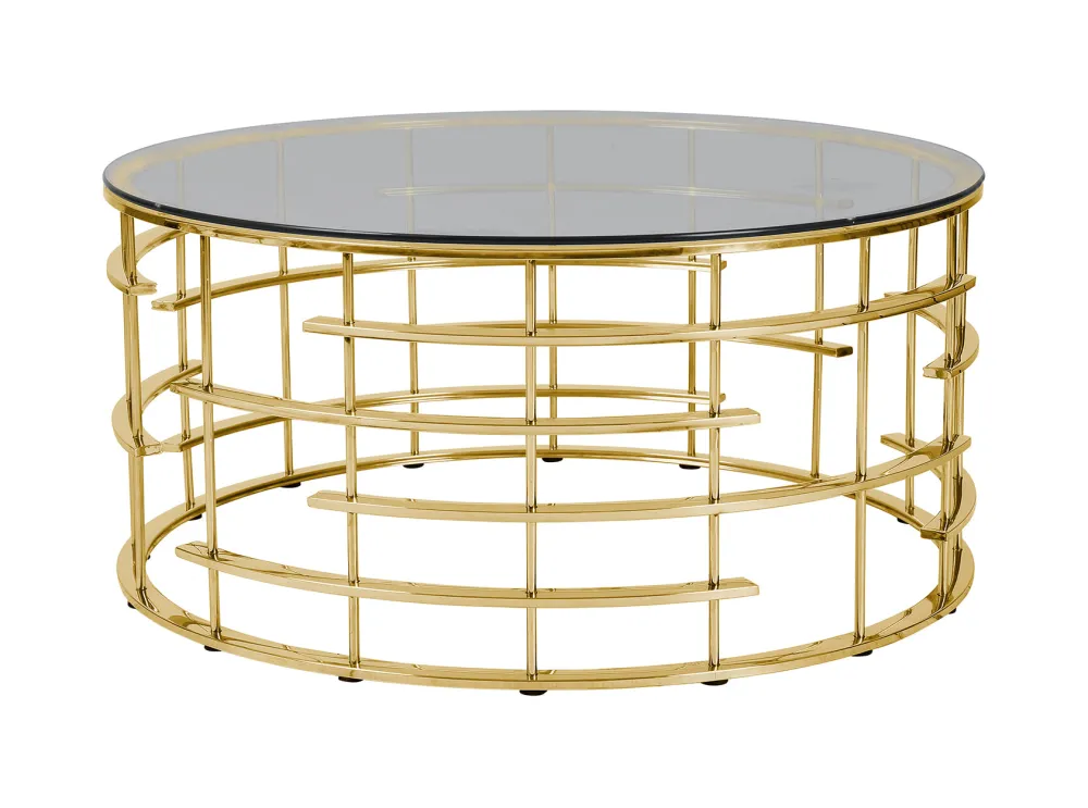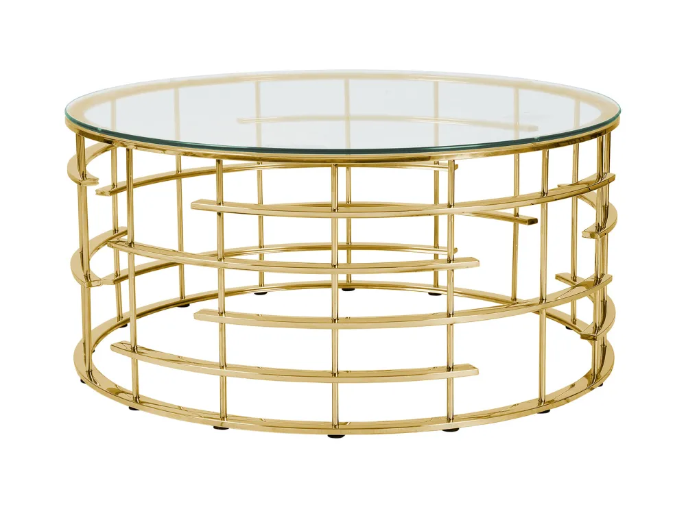 Als je op zoek bent naar een extravagant designhoogtepunt dat afwijkt van de norm, dan maak je gegarandeerd de juiste keuze met deze ronde salontafel van veiligheidsglas en robuust roestvrij staal. Het abstracte roestvrijstalen frame maakt de glazen tafel tot iets heel bijzonders en zorgt in een handomdraai voor een luxueuze verrijking van elke woon- en zithoek. Ronde bank- en bijzettafels staan bijzonder mooi bij kubusvormige banken en fauteuils. Het tafelblad is gemaakt van 8 mm dik veiligheidsglas en vormt in combinatie met het roestvrijstalen frame een bijzonder onderhoudsvriendelijke en slijtvaste combinatie. Het prachtige frame in goud zal altijd een spannende blikvanger zijn als highlight voor de bank.
