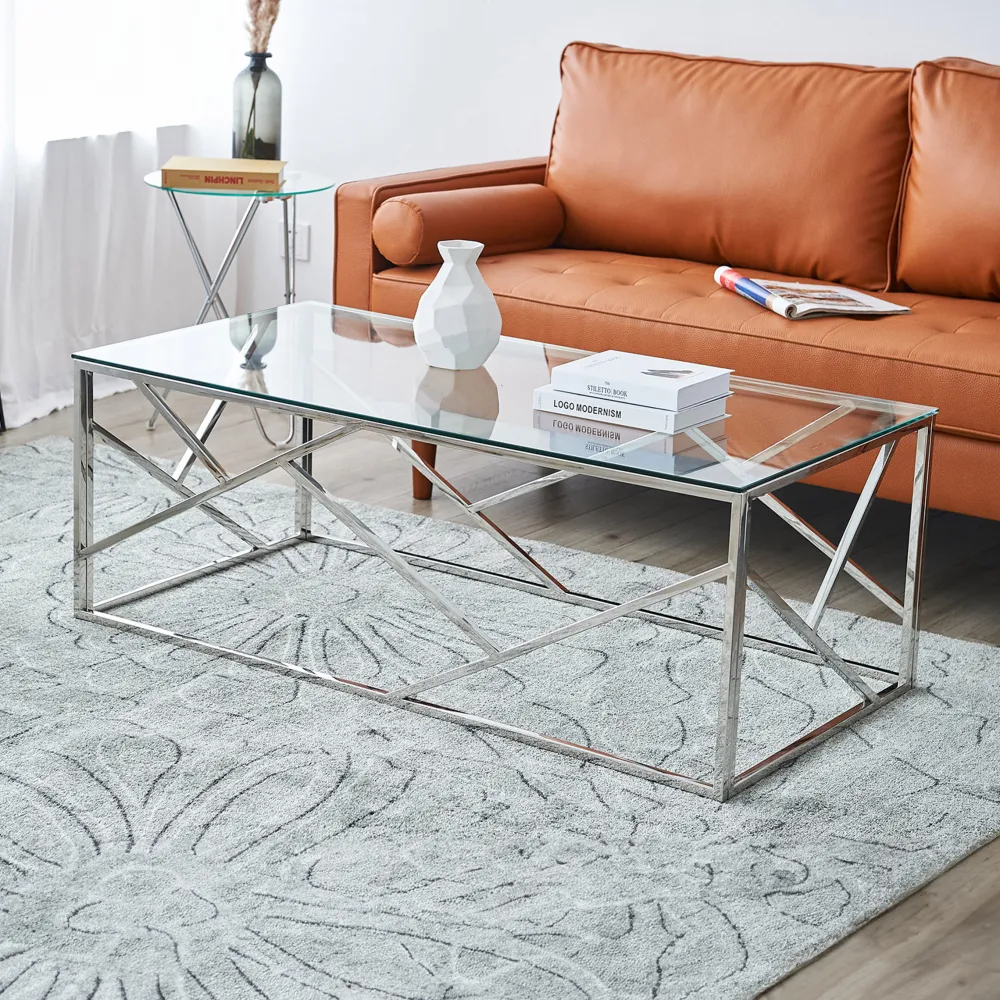 Als je op zoek bent naar een extravagant designhoogtepunt dat afwijkt van de norm, dan maak je gegarandeerd de juiste keuze met deze salontafel van veiligheidsglas en robuust roestvrij staal. Het abstracte roestvrijstalen frame maakt de glazen tafel tot iets heel bijzonders en zorgt in een handomdraai voor een luxueuze verrijking van elke woon- of zithoek. Het bladformaat van 120×60 cm biedt opbergruimte voor alledaagse voorwerpen en ruimte voor decoratieve elementen. Het tafelblad is gemaakt van 8 mm dik veiligheidsglas en vormt in combinatie met het roestvrijstalen frame een bijzonder onderhoudsvriendelijke en slijtvaste combinatie. Het mooie frame in zilver wordt in elk geval een spannende blikvanger als highlight voor de bank.