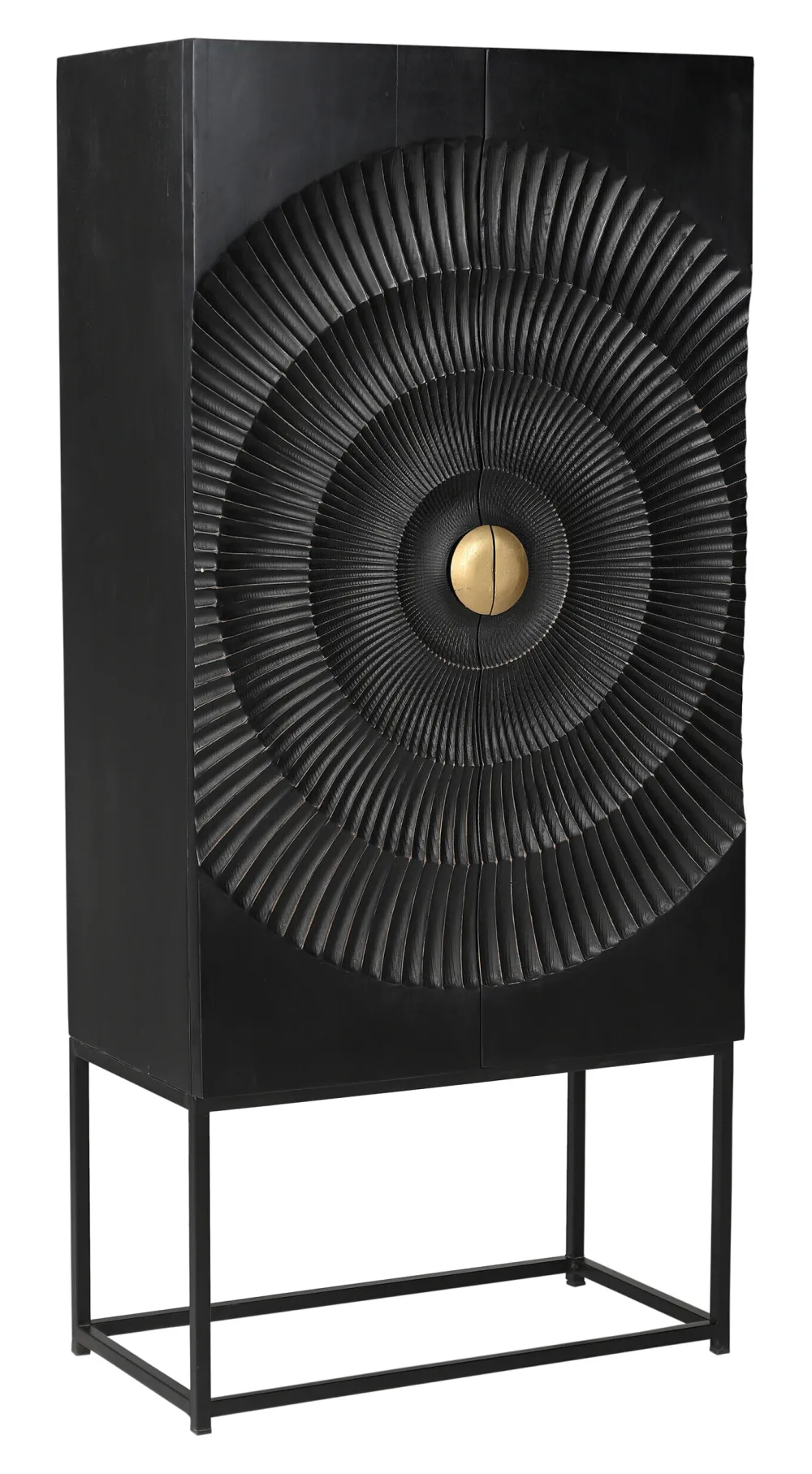 Een kast kan veel meer zijn dan een functioneel meubelstuk – het kan het middelpunt van een kamer zijn en tegelijkertijd orde scheppen. De elegante kast van massief zwart mangohout combineert modern design, natuurlijke materialen en artistieke details tot een meubelstuk dat zowel praktisch als esthetisch is. Het hoogtepunt van deze kast is het artistieke, ronde snijpatroon op de deuren. De fijne details geven het zwarte mangohout een edele, handgemaakte touch die het natuurlijke karakter van het materiaal onderstreept. De goudkleurige metalen handgreep in het midden zorgt voor een luxueus accent en steekt stijlvol af tegen het donkere hout. Gemaakt van robuust, massief mangohout staat deze kast voor duurzaamheid en kwaliteit. Het zwarte metalen frame geeft het ontwerp een moderne lichtheid en zorgt tegelijkertijd voor stabiliteit. Deze combinatie van hout en metaal maakt de kast veelzijdig – perfect voor de woonkamer, slaapkamer of eetkamer. Achter de twee artistiek vormgegeven deuren schuilt een goed doordacht interieur met drie ruime vakken. Of het nu gaat om borden, boeken of kleding – deze kast biedt genoeg ruimte voor al je favoriete spullen en houdt je kamer opgeruimd. Als opbergruimte in de woonkamer, als kledingkast in de slaapkamer of als stijlvol accent in de gang – deze kast past harmonieus in de meest uiteenlopende interieurstijlen en zet een bijzonder accent.