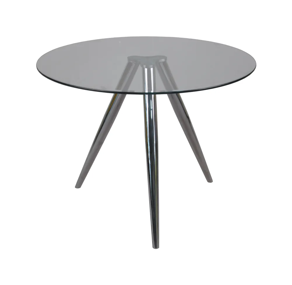 Het nieuwe middelpunt in je eethoek. Het ronde tafelblad is gemaakt van glas. Met een diameter van 100 cm biedt hij voldoende ruimte voor maximaal 4 personen. Het blad van helder glas heeft een dikte van 10 mm en is zeer stabiel. De drie conische tafelpoten zijn verchroomd en geven de tafel een zeer goede stabiliteit. Het moderne uiterlijk van deze tafel maakt hem geschikt voor bijna elk interieur. Waar je deze tafel ook gebruikt, eetkamer of bistro, het is meer dan een plek om te zitten en te eten. Hier kun je uitgebreide gesprekken voeren met vrienden of familie.