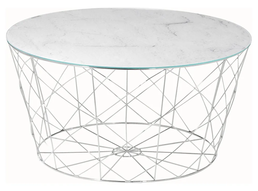De ronde salontafel combineert modern design met een dosis extravagantie. Het glazen blad met onderliggende folie in marmerlook past perfect bij het metalen frame in goud. De banktafel biedt voldoende opbergruimte voor bijvoorbeeld fruit, knabbels of een bloemenvaas. Het frame kan gebruikt worden als opbergmand voor tijdschriften. Dankzij het aantrekkelijke ontwerp is deze salontafel met veel meubels te combineren en zal hij ook in jouw huis een passende plaats vinden.