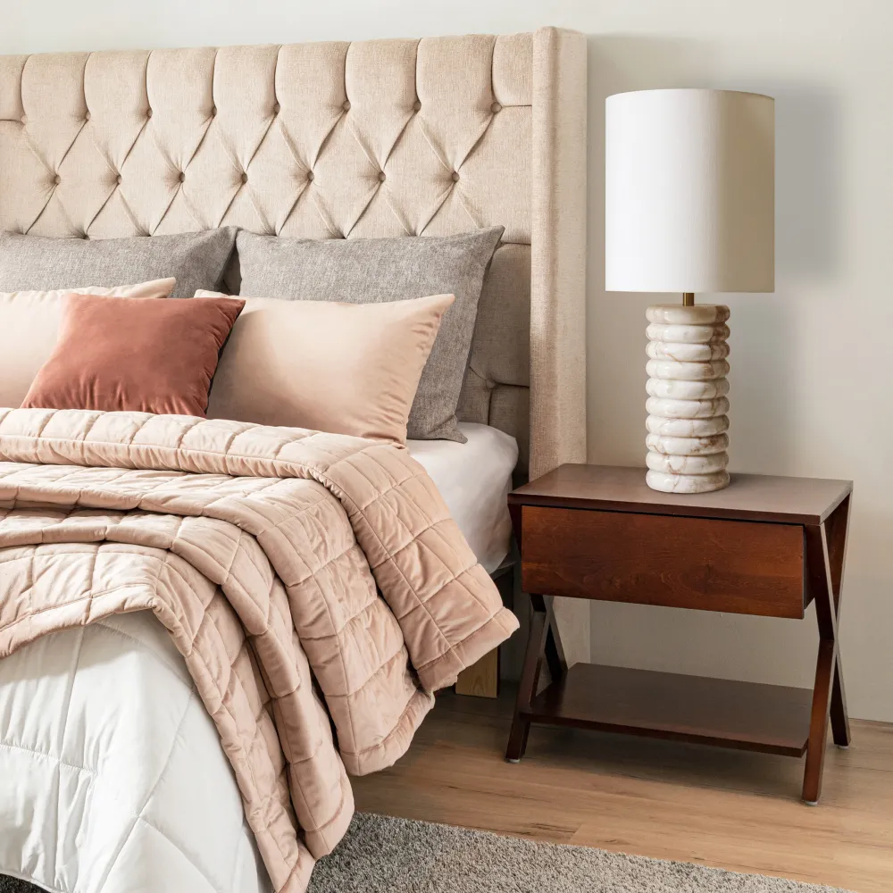 - Lampenkap: Ivoorkleurige linnen stof voor zacht licht