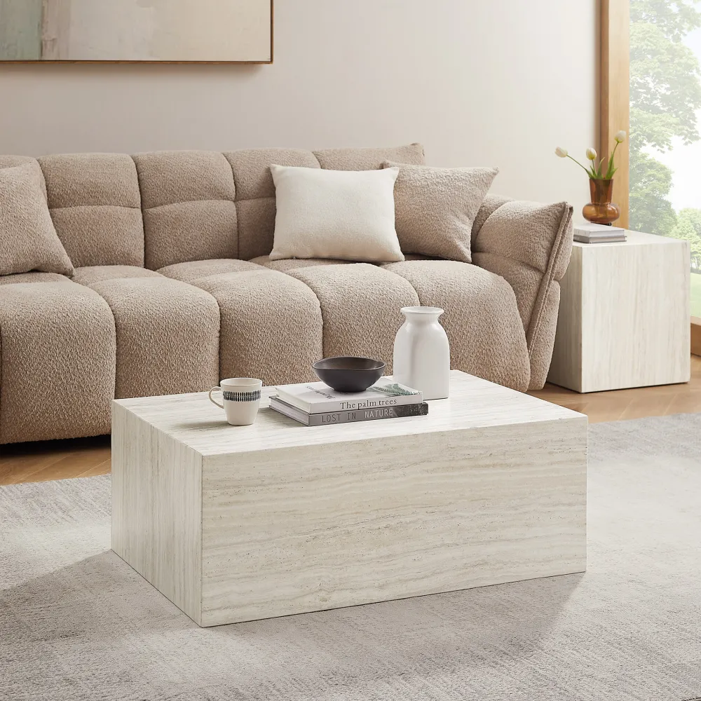 Deze chique salontafel laat je woonkamer er veel eleganter uitzien. De eenvoudige kubusvorm met veel oppervlak benadrukt de bijzondere travertin-look. De lage hoogte tovert een modern loungekarakter in je huis.
