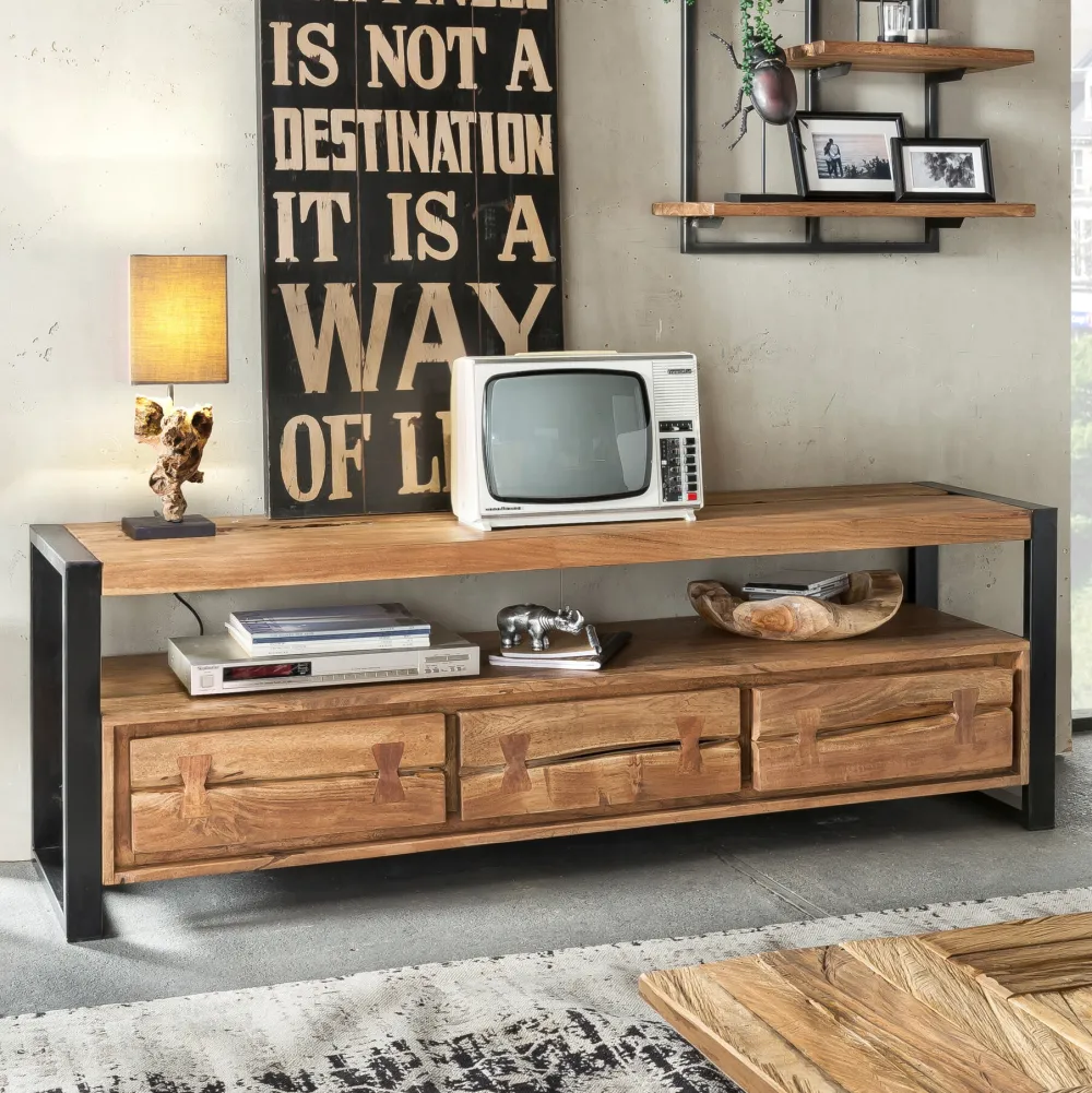 Vandaag woon je met een natuurlijke boomrand ! Onzin, maar het is gewoon mooi, want materiaal en stoerheid gaan hand in hand. De zolderflat in New York kan de juiste setting zijn, maar ook bij jou thuis, in combinatie met bestaande meubels, ontstaat al snel een geheel nieuw beeld – uniek en gegarandeerd niet alledaags. Zwaluwstaartverbindingen en de bewerking van de gegroeide randvorm doen het hart van elke timmerman sneller kloppen. Voeg daarbij het warme hout als tegenhanger van het industrieel aandoende metaal – gewoon anders.