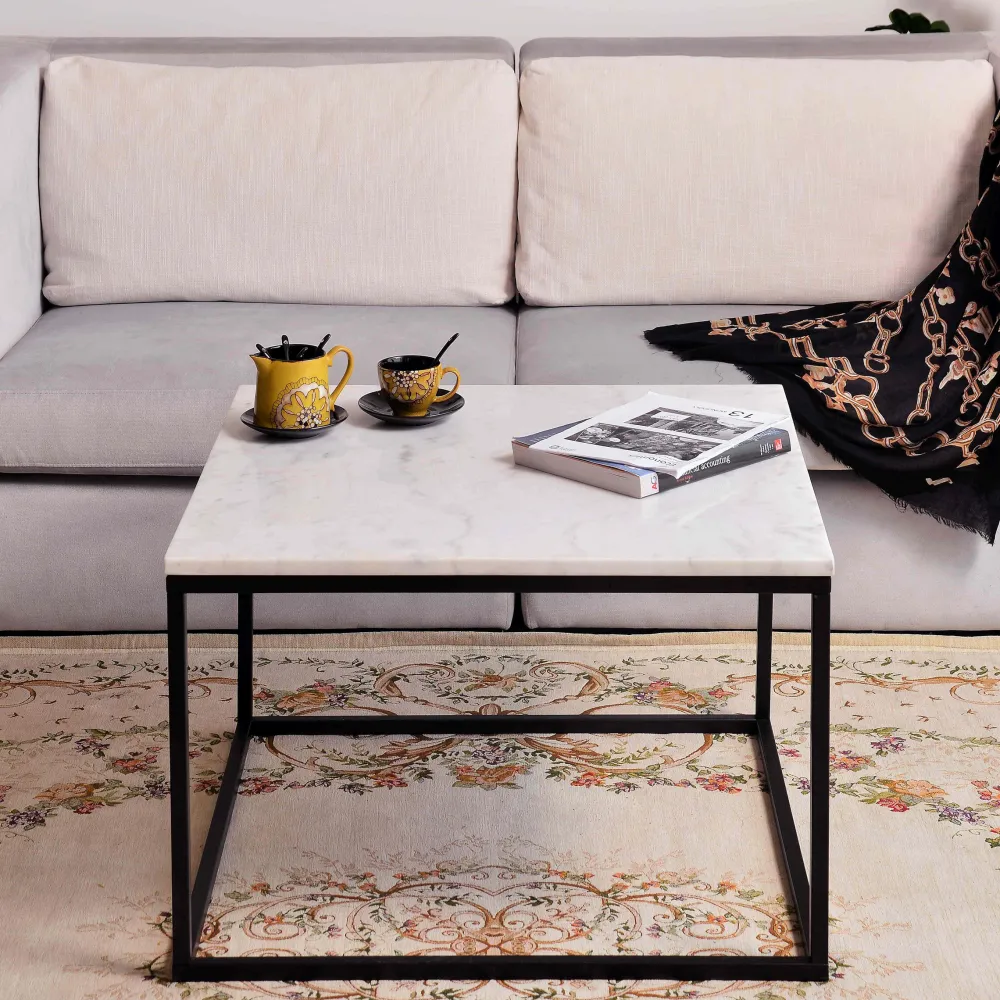 Echt marmer, zorgvuldig geselecteerd en gepolijst tot een zijdeachtige glans, plus een modern metalen frame in satijnmat, sterk genoeg om het gewicht te dragen – klinkt duur. Maar dat is het niet, wat het wonen nog leuker maakt. Met bladafmetingen van 75 x 75 cm en een hoogte van 48 cm heb je ook hier de juiste afmetingen, zodat je niet verdwaalt voor grotere banken.