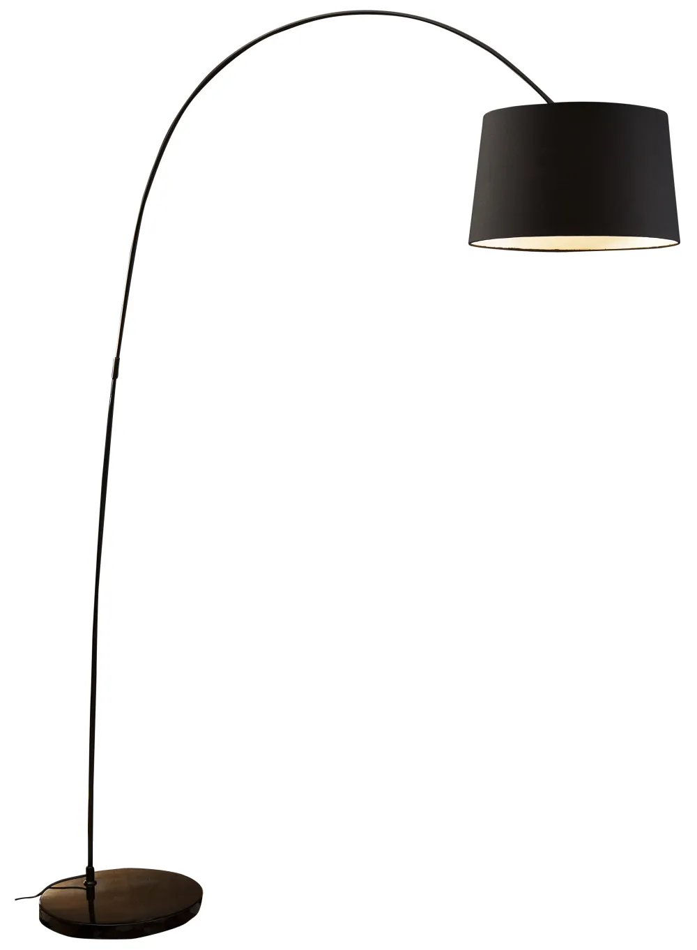 Exclusieve booglamp in een modern ontwerp. De royale lampenkap heeft een diameter van 40 cm en is gemaakt van textiel. Dit ziet er niet alleen extravagant uit, maar biedt de vloerlamp ook een enorme stabiliteit. De lamp wordt handig in- of uitgeschakeld via een voetschakelaar. Dankzij de gebogen vorm kan de booglamp in elke lees- of tv-hoek worden geïntegreerd. Het aangenaam warme licht en de meegeleverde dimschakelaar zorgen voor een gezellige sfeer in elke kamer.