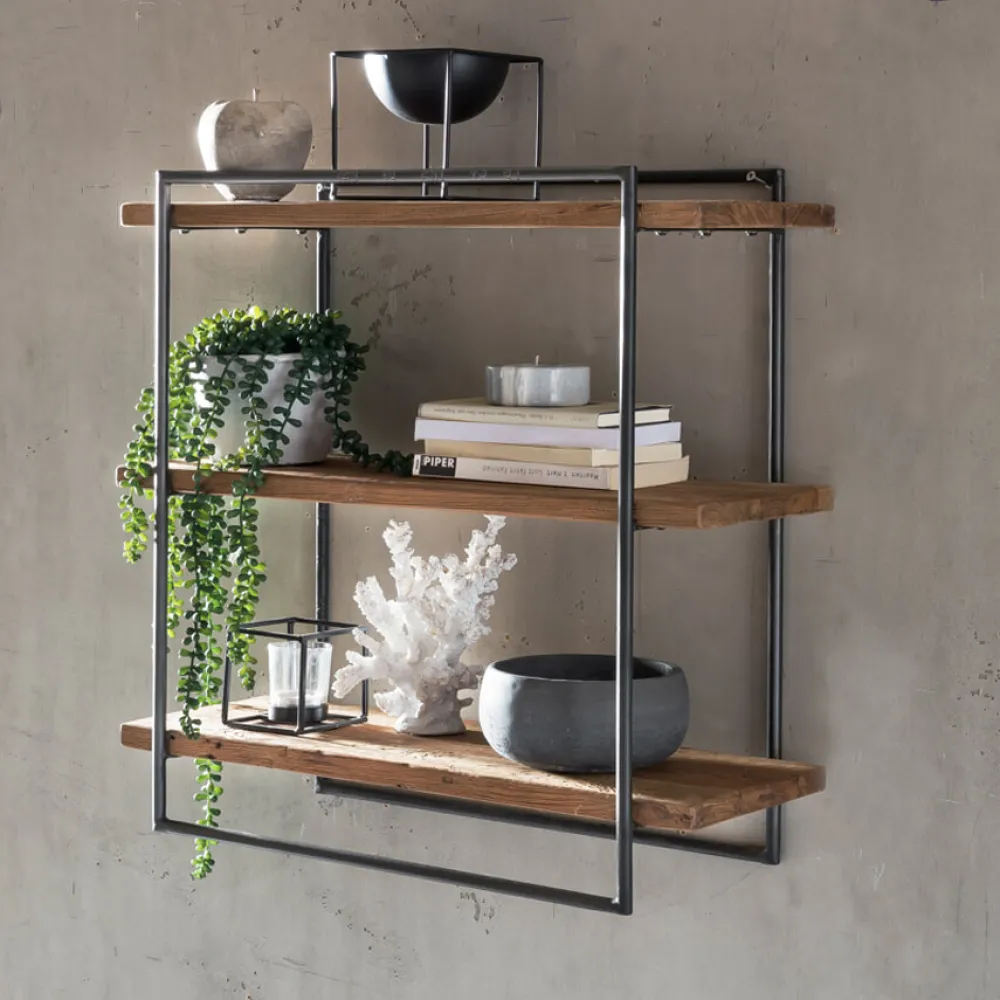 Gerecycled teakhout, handgemaakte productie, afzien van moderne hulpmiddelen – dat zijn allemaal goede redenen waarom deze betoverende wandplank er bovenuit steekt. Het hout is afkomstig van oude huizen, schuren of rijstbogen, want teakhout werd destijds in Indonesië voor veel alledaagse dingen gebruikt. Tegenwoordig voorkomt men ook het kappen van jonge bomen en hebben de meubels gewoon veel meer charme en uitstraling.