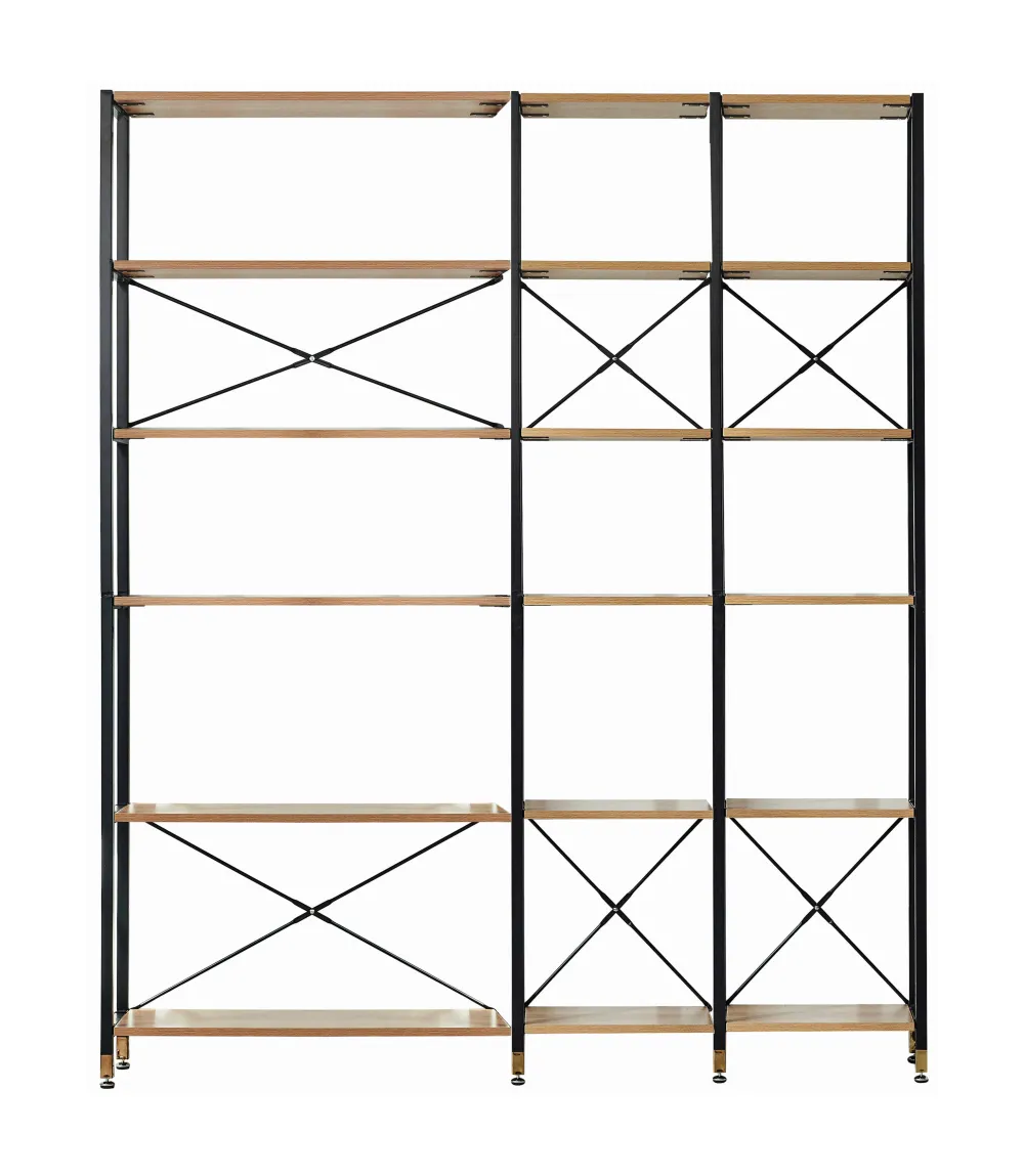 Nu komt er orde in de chaos. Met deze wandplankenset creëer je extra opbergruimte en is ruimtegebrek geen probleem meer. Met een hoogte van 210 cm biedt de wandplankenset je genoeg ruimte voor bijvoorbeeld boeken of decoratieve spullen. Terwijl het stevige frame van metaal is, zijn de planken en laden gemaakt van MDF met een acacia decor. Dankzij de open indeling van de staande plank kun je hem ook gebruiken als roomdivider.