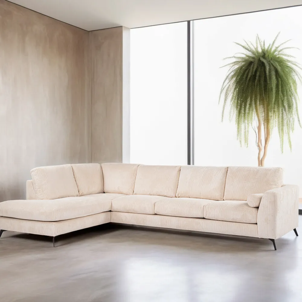 BASE Hoekbank|3-zits Hoekbank Joetta Links, Rib, kleur Beige
