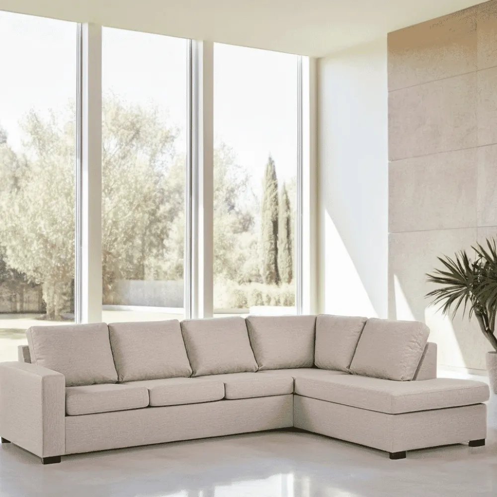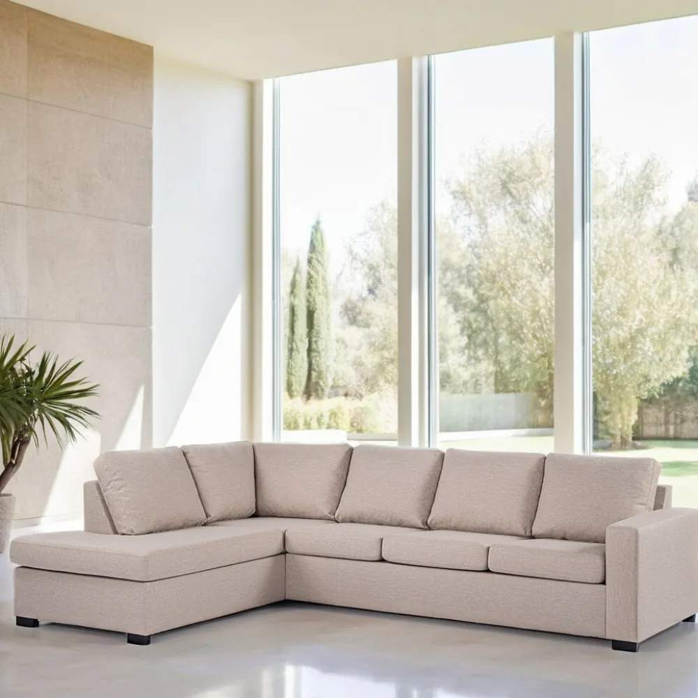 BASE Hoekbank|4-zits Hoekbank Dino Linnenlook, kleur Beige