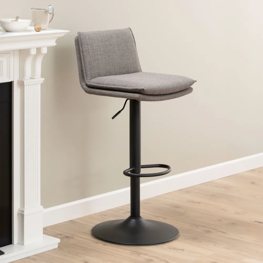 Met een klassieke uitstraling is deze barkruk perfect voor een kopje koffie in de ochtend of een drankje in de avond. Je krijgt een elegante barkruk met mooie details – let vooral op de Franse stiksels. De zitting, die bijna uit één stuk gevormd is, is bekleed met een lichtgrijze-bruine stof met een tweekleurig effect. De ruwe, gepoedercoate metalen trompetvoet kan worden aangepast aan jouw gewenste hoogte. Een perfecte toevoeging aan jouw huisbar of keuken. Bestel nu en geniet van comfort en stijl!