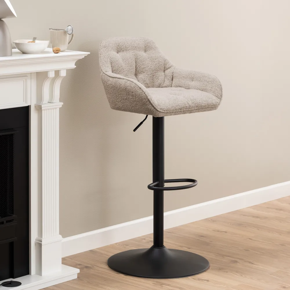 Of je er nu ’s ochtends ontbijt of ’s avonds een drankje drinkt, barkruk ‘Loren’ is de perfecte aanvulling voor in elke keuken en eethoek. De kruk is bekleed met een zachte bouclé stof. Deze stof zien we nog steeds erg veel terug in het interieur en dat is niet voor niks. Bouclé voelt heerlijk zacht aan, heeft een trendy look en is ook nog eens makkelijk te onderhouden.
