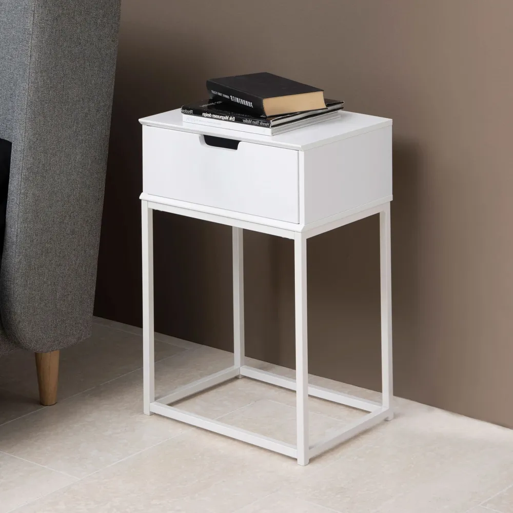 Verfraai je slaapkamer met dit elegante nachtkastje. De houten lade biedt praktische opbergruimte zodat je je benodigdheden bij het bed kunt bewaren. Het zwart gelakte blad past perfect bij het gepoedercoate metalen onderstel. Let op het geïntegreerde handvat voor een elegant detail.