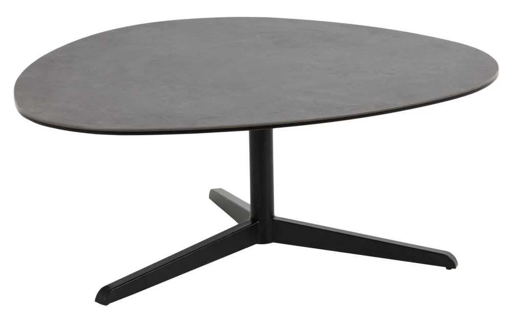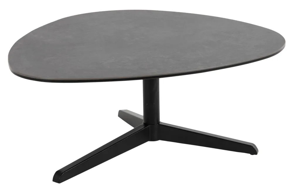 Deze salontafel combineert een modern design met hoge functionaliteit. De gebogen driehoekige vorm zal een stijlvolle toevoeging zijn aan elke woonruimte. Het tafelblad is gemaakt van glas en keramiek, waardoor het hitte- en krasbestendig is. Stijlvol en praktisch in één perfecte combinatie.