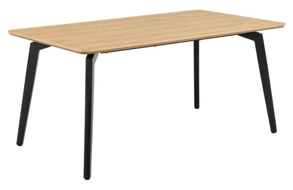 Met zijn strakke en praktische ontwerp is deze eettafel het perfecte middelpunt in elke eetkamer. Verzamel rond het tafelblad, dat een eiken look heeft, dat staat op zwarte ruw gepoedercoate stalen poten. De rechthoekige tafel biedt plaats aan 8 personen voor een gezellig etentje of een informele zondagse brunch.