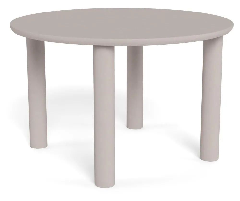 Deze eettafel geeft een speelse draai aan het dagelijks leven. Met zijn ronde vorm en gedurfde grijze afwerking creëert hij een fris middelpunt in de kamer. Het eenvoudige silhouet en de stevige poten maken het gemakkelijk om samen te komen voor informele maaltijden en vrolijke gesprekken.