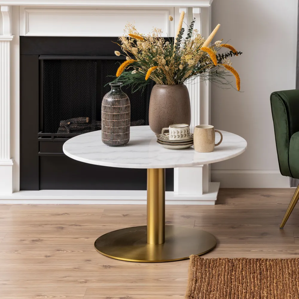 Bendt Ronde Salontafel|Ronde Salontafel Naima Marmer/Brass, 80cm Wit