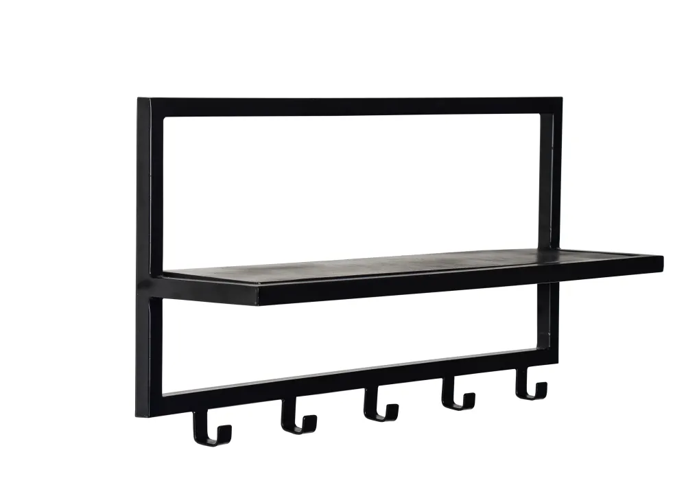 Brix Wandkapstokken|Kapstok Bono Mangohout, met 5 haken en plank Zwart