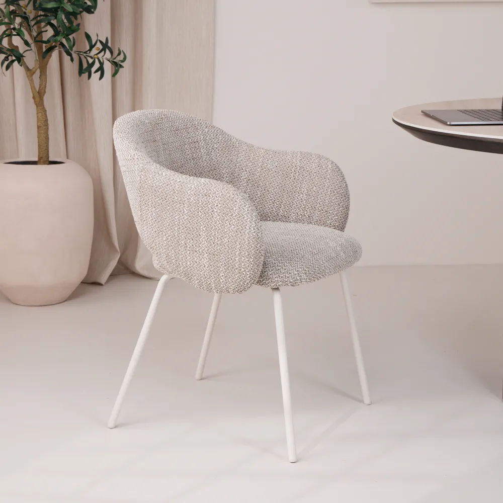 By-Boo Beige Eetkamerstoelen|Eetkamerstoelen Met Armleuning|Eetkamerstoel Story Geweven stof
