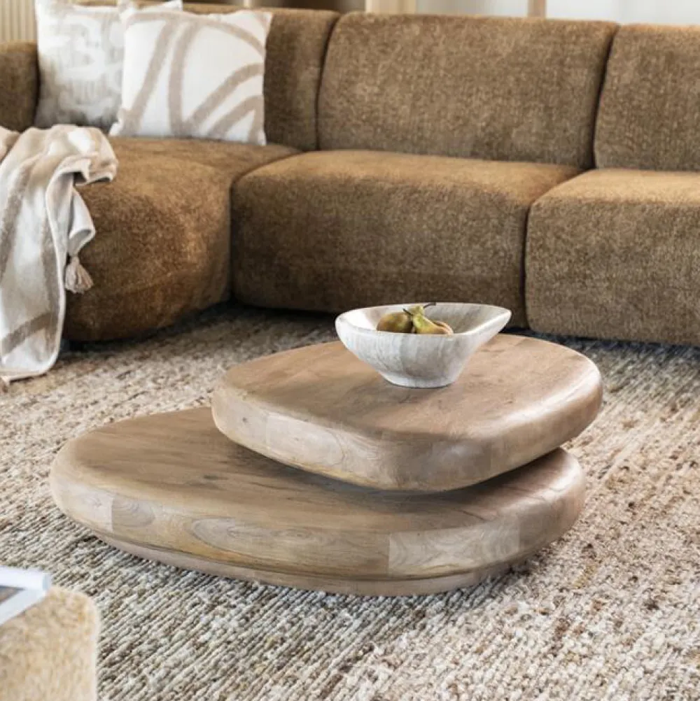 De By‑Boo Kabo salontafel van mangohout brengt een warme en natuurlijke sfeer in je woonkamer. Dankzij de organische vormen en zachte, afgeronde lijnen voelt je interieur direct uitnodigend en rustgevend aan, terwijl het unieke houtpatroon karakter en leven toevoegt.