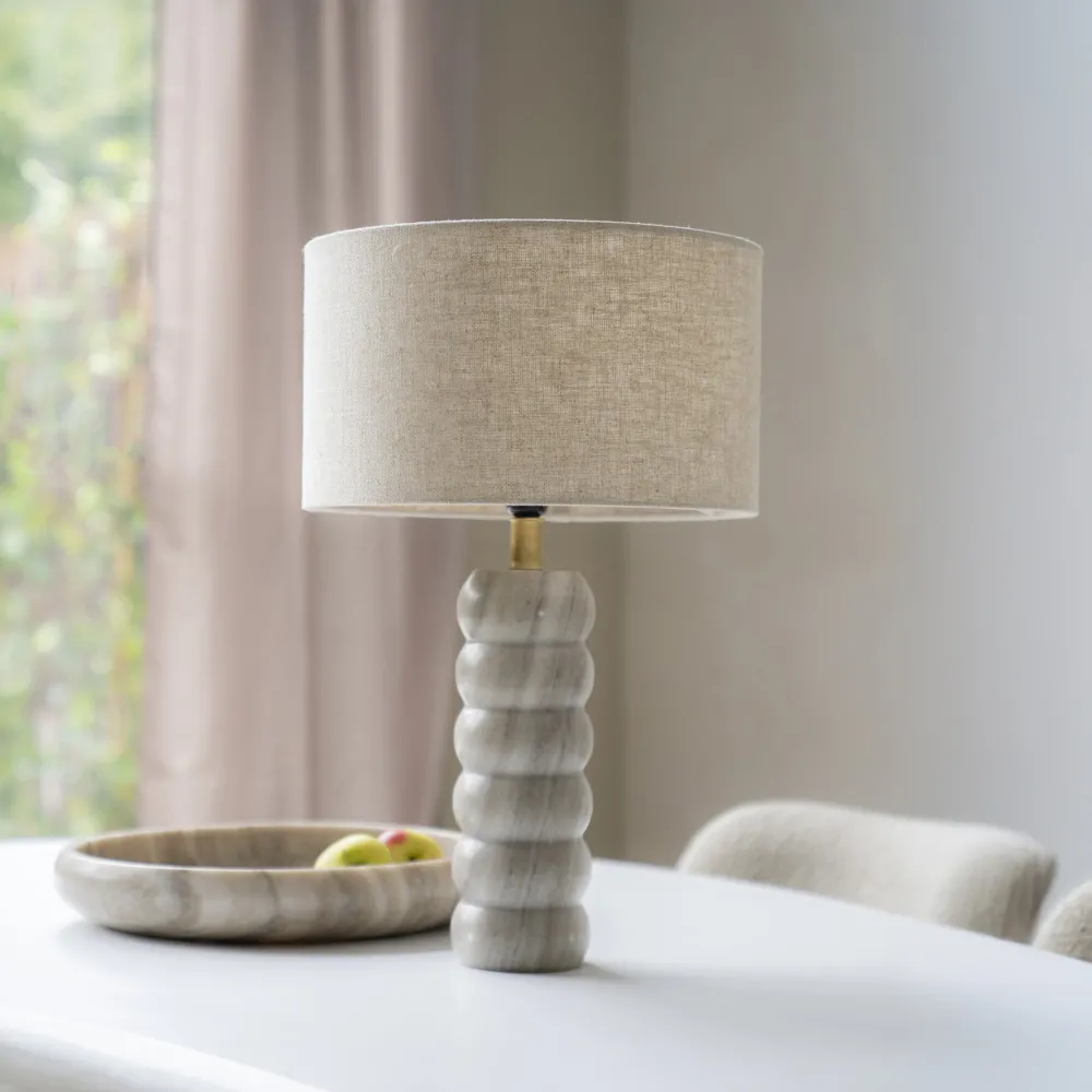 By-Boo Tafellampen|Tafellamp Patron Marmer en Linnen, 55cm Beige