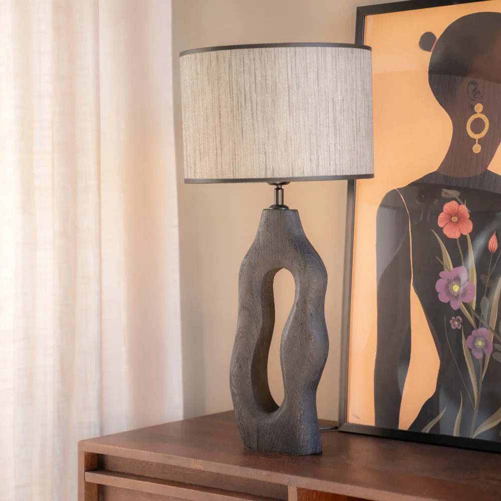 By-Boo Tafellampen|Tafellamp Shiboo Hout, 63cm hoog, kleur Zwart