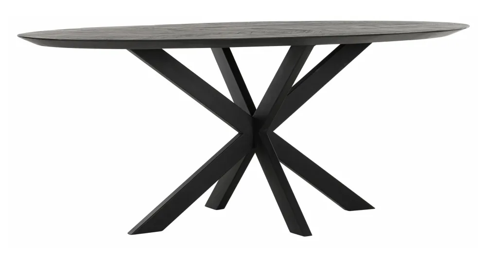 DTP Home eettafel Shape ovaal Black is van de Timeless Black collectie van DTP Home. De eettafel heeft een blad gemaakt van zwart gerecycled teakhout met daaronder 4 zwarte ijzeren poten.