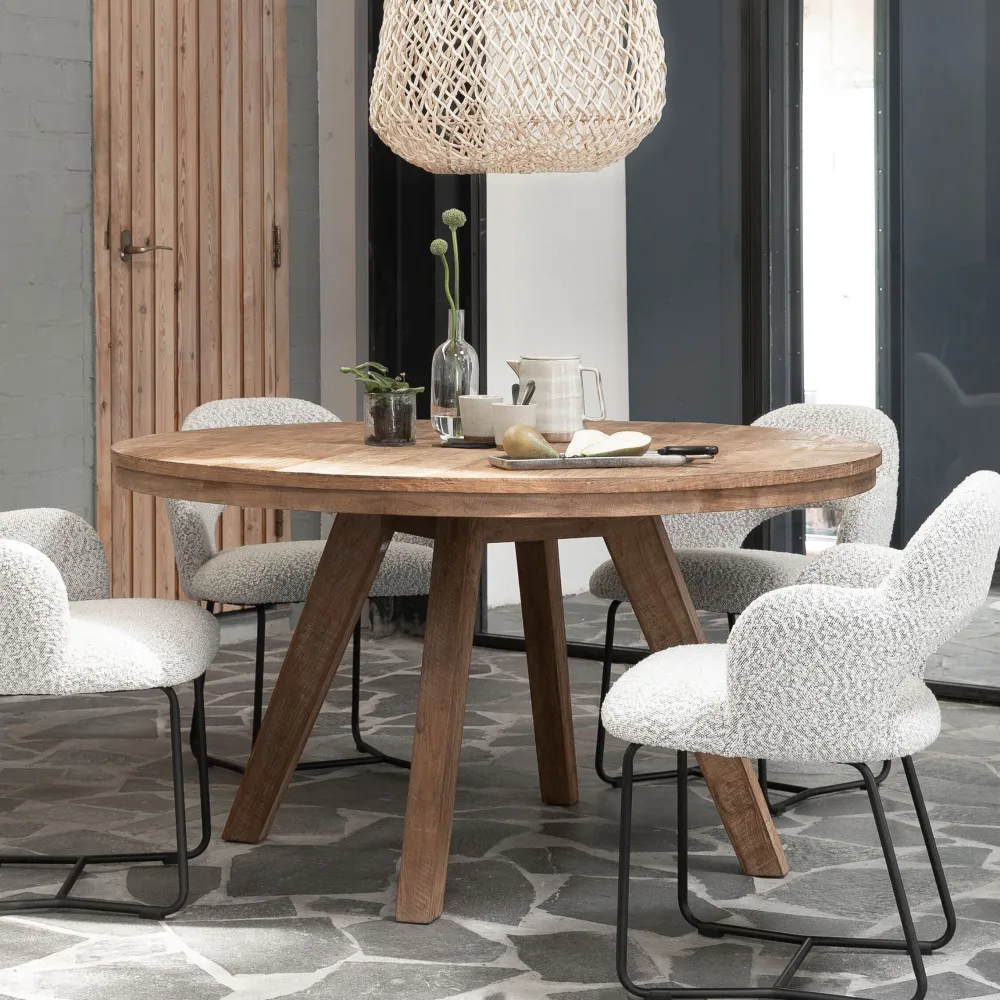 Eettafel Tradition is een ronde eettafel met taps toelopende poten en tafelblad. De tafel is gemaakt van gerecycled teakhout, een duurzaam houtsoort. Hierdoor is elke tafel uniek. Eettafel Tradition heeft een afmeting van 78xØ140 cm.