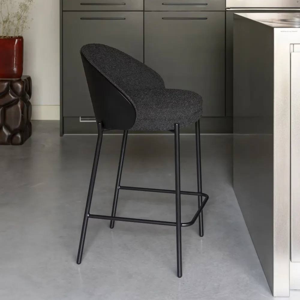 Dutchbone Barkruk Met Rugleuning|Barkruk Rodin Essenhout en Bouclé, kleur (zithoogte 65cm) Zwart