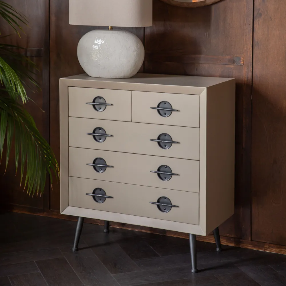Als je graag een stoer randje wil toevoegen aan je interieur, zit je goed met de Dutchbone Edson. Deze ladekast is gemaakt van hout met een prachtige, crèmekleurige afwerking. Een tint die zorgt voor warmte, maar je interieur tegelijkertijd ook ruimtelijk en licht houdt. De combinatie met het ijzer van de pootjes en de opvallende handvatten zorgt daarnaast voor een verrassende twist en geeft een industriële touch. Hierdoor is deze kast naast functioneel ook een echte sfeermaker die jouw interieur naar een hoger niveau tilt.