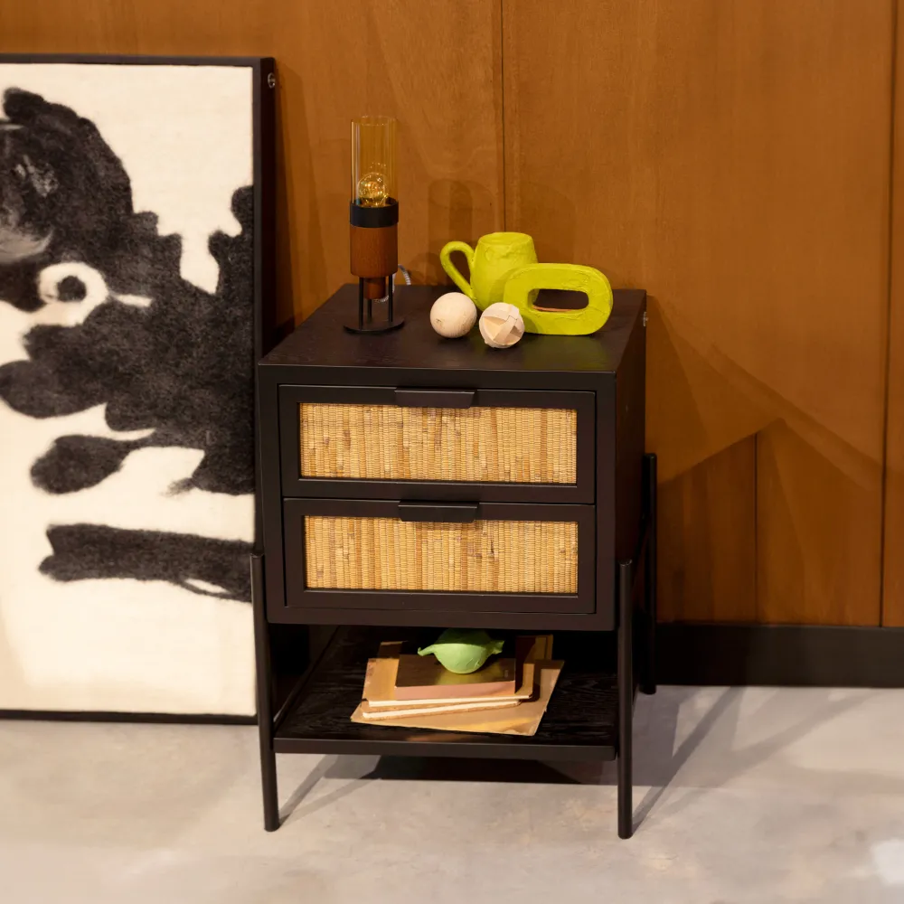 Wil je jouw interieur omtoveren tot een warme plek, waarin je heerlijk tot rust komt? Dan breng je met de Dutchbone Yasu serie al snel de juiste sfeer in huis. De meubels van deze serie hebben namelijk een fijne, natuurlijke look. Dat komt door de matte finish en de deurtjes en lades, die afgewerkt zijn met rattan. Dit zorgt er bovendien voor dat je spullen netjes opbergt uit het zicht, waardoor je interieur meteen al netter en rustiger oogt. Wat verder opvalt, is dat het ijzeren onderstel dezelfde kleur en afwerking heeft als het hout. Dit zorgt voor eenheid en geeft een kalme uitstraling. Niet voor niets betekent de naam Yasu dan ook ‘kalm’ in het Japans.