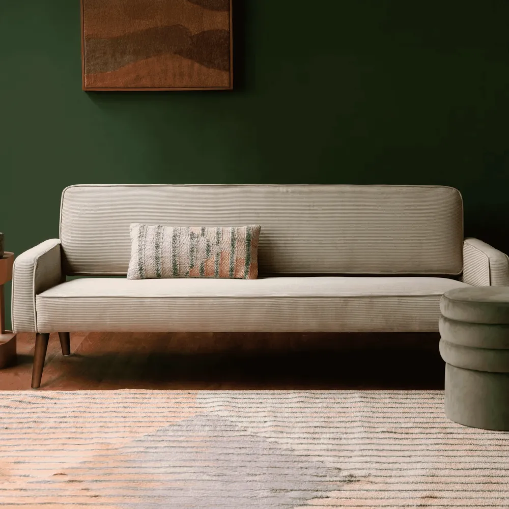 Met de Dutchbone Preston haal je dat fijne retro gevoel in huis, maar dan wel met een moderne twist. Deze slanke bank is bekleed met een prachtige ribstof, die de slanke lijnen van de bank extra accentueert. Het bijzondere aan deze bank is de ruimte tussen de rugleuning en zitting. Dit maakt het design luchtig en zorgt tegelijkertijd voor een karakteristieke look. De kegelvormige pootjes in walnootkleur maken de look af en geven een heerlijk warme sfeer af. Perfect om de ruimte mee om te toveren tot een knusse plek om samen te komen met vrienden en familie – a place to warm your soul.