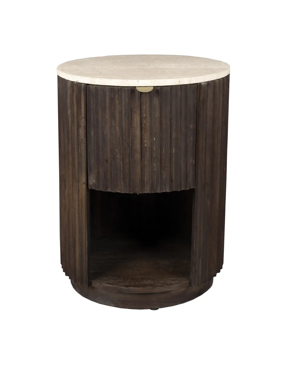 Dutchbone Ronde Bijzettafel|Bijzettafel/Nachtkastje Marlow Mangohout en Travertin