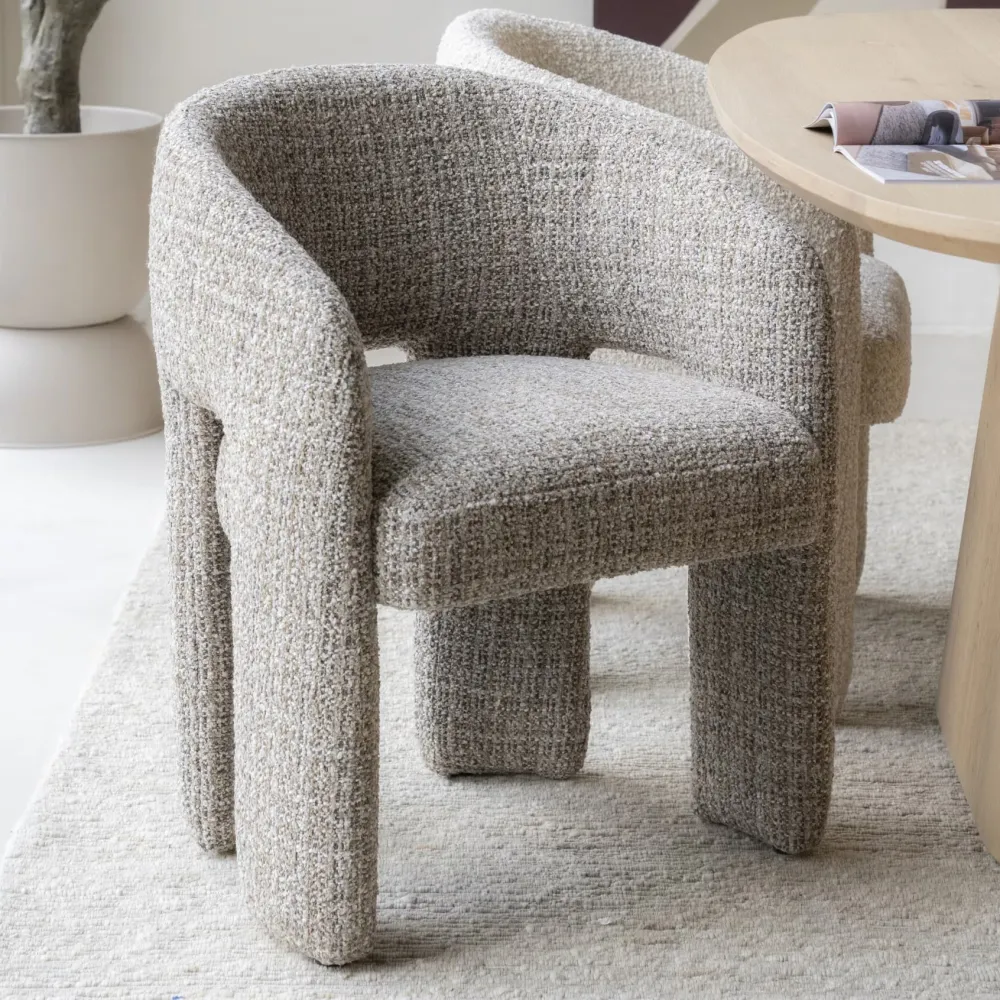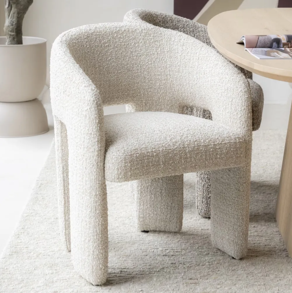 •Volledig bekleed met bouclé voor een zachte, luxueuze uitstraling.