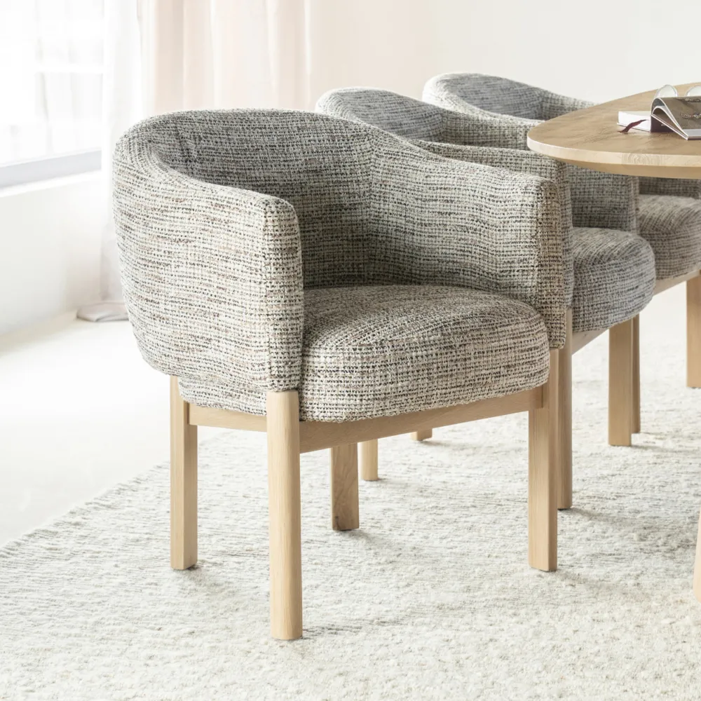 Eleonora Beige Eetkamerstoelen|Eetkamerstoelen Met Armleuning|Eetkamerstoel Micha Geweven stof en eikenhout