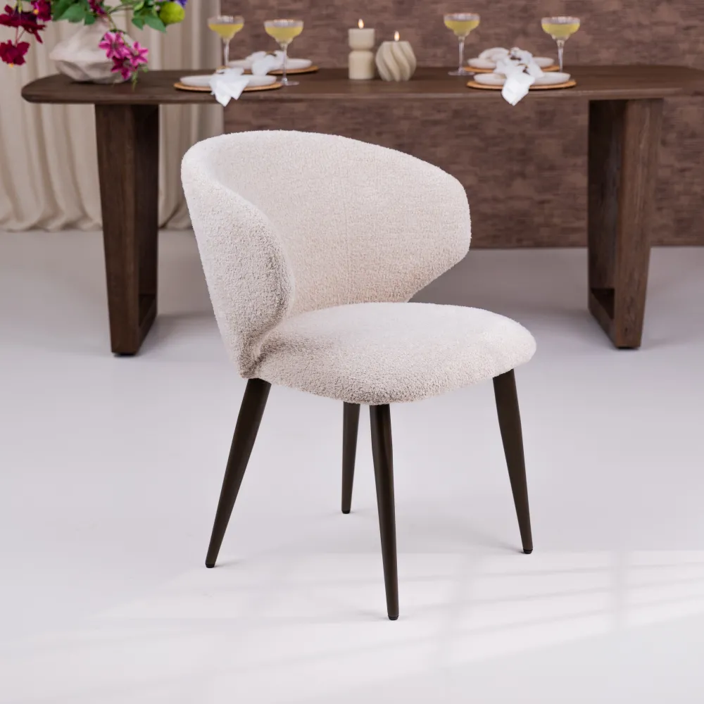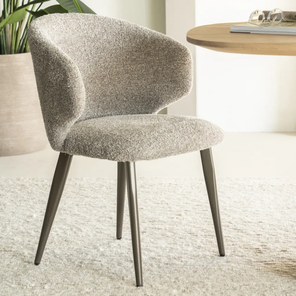 Eleonora Beige Eetkamerstoelen|Eetkamerstoelen Zonder Armleuning|Eetkamerstoel Mateo Chenille