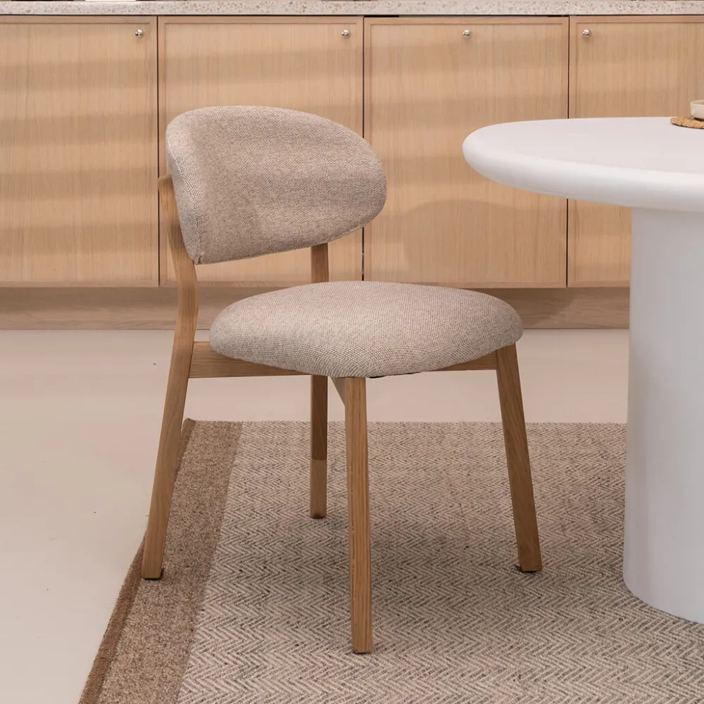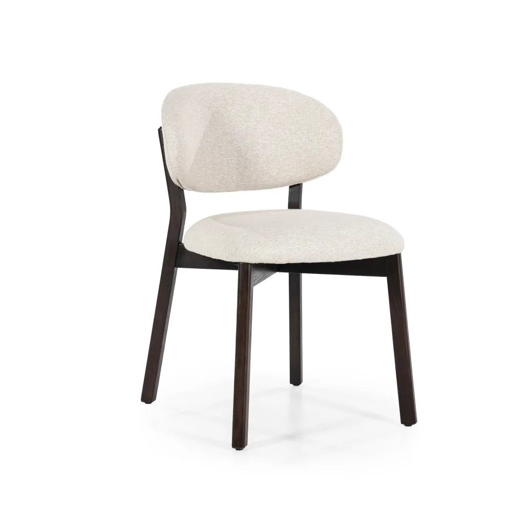 Eleonora Beige Eetkamerstoelen|Eetkamerstoelen Zonder Armleuning|Eetkamerstoel Mikky Eikenhout en stof