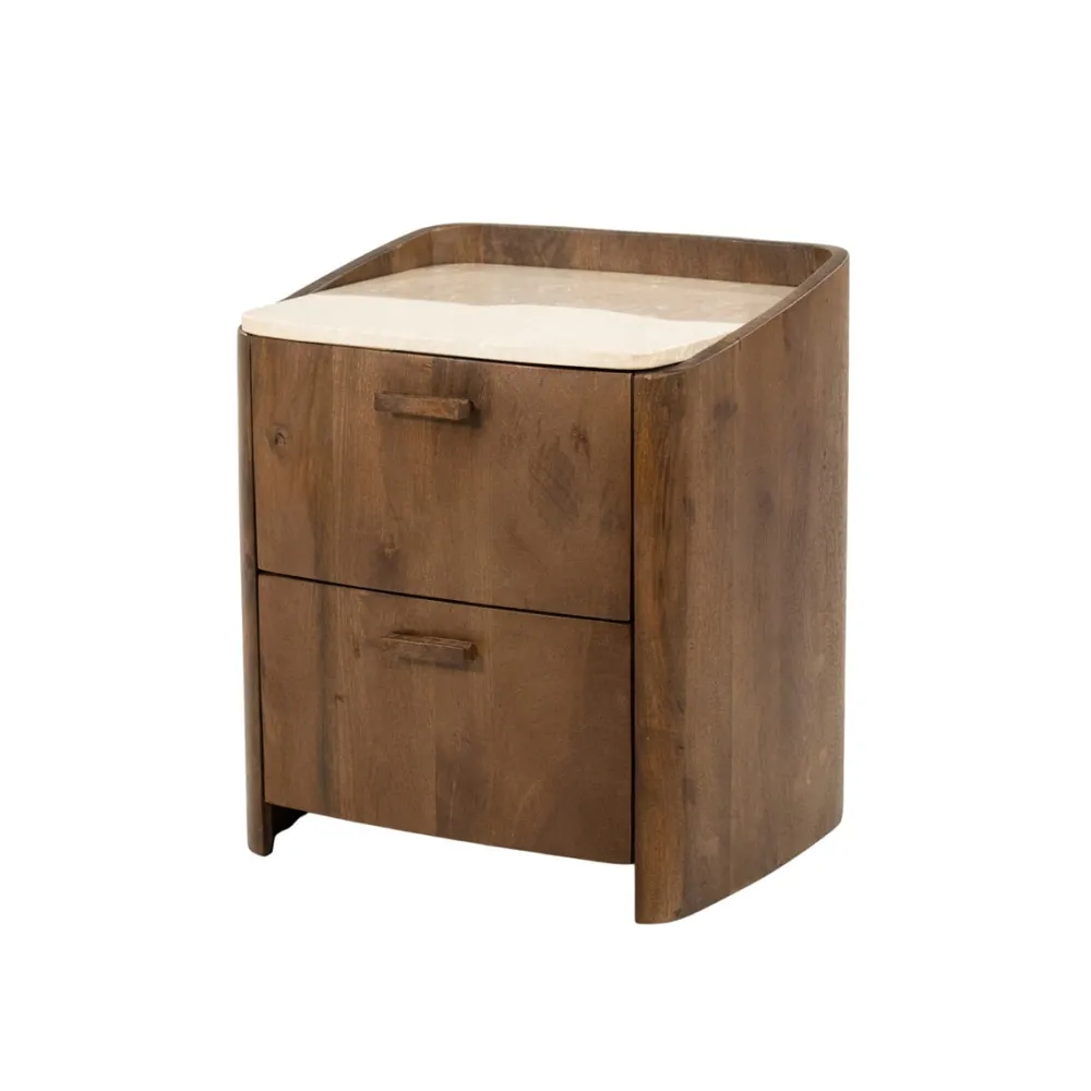 Eleonora Nachtkastjes|Nachtkastjes|Nachtkastje Mabel Marmer en mangohout, Met 2 lades Bruin