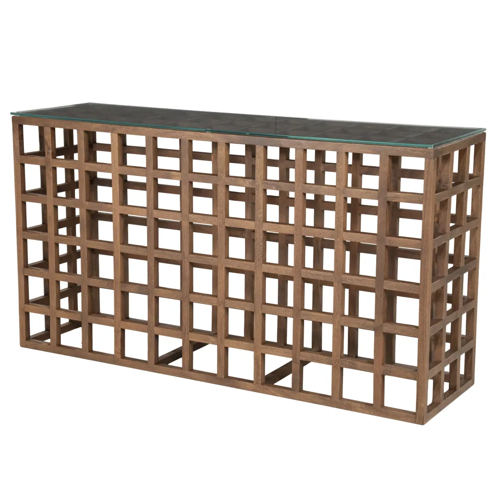 Eleonora Sidetables|Sidetable Heras Mangohout en glas, 140cm Bruin