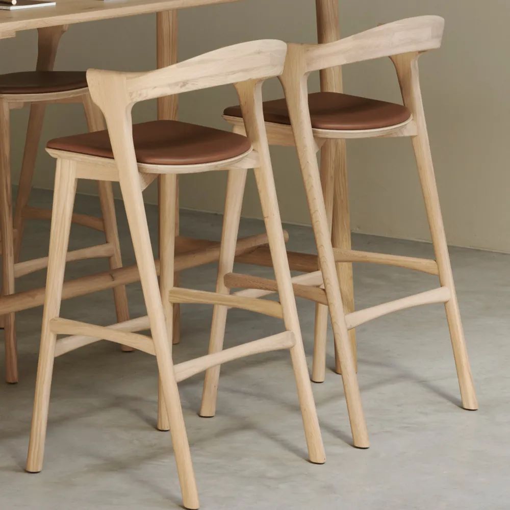 De Bok-collectie doet denken aan de gebogen hoorns van een geit en combineert sculpturale elegantie en hedendaags handwerk in een sierlijke en luchtige vorm. In de loop der jaren is de Bok eetkamerstoel een van de meest herkenbare ontwerpen van Ethnicraft geworden. Deze Bok kruk is een slimme aanpassing met het zelfde kenmerkende silhouet.