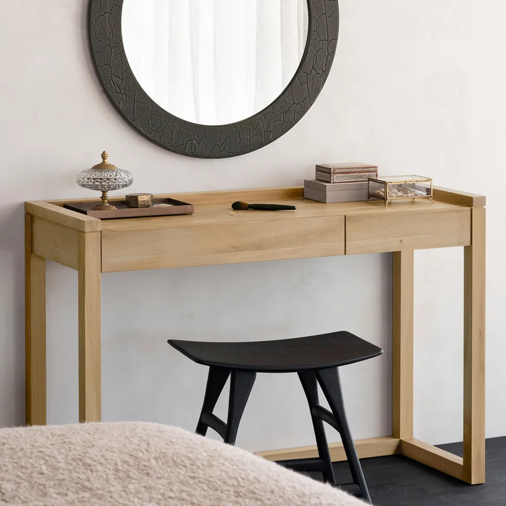 Het Frame bureau is compact en ideaal voor kleine ruimtes. De gladde lades zorgen voor praktische bergruimte waarin essentiële papieren en schrijfbenodigdheden opgeborgen kunnen worden, wat het ideaal maakt als console of werkplek.