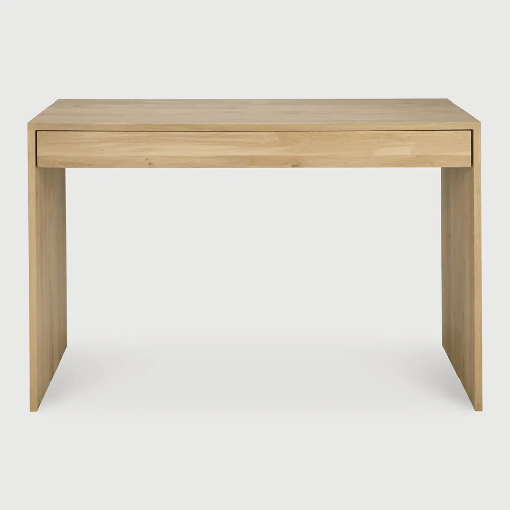 Bureau Wave van Ethnicraft is een prachtig meubelstuk van geolied, massief eikenhout met een natuurlijke afwerking die de warme houtnerf prachtig benadrukt. Het brede blad biedt veel ruimte om lekker te werken of creatief bezig te zijn.
