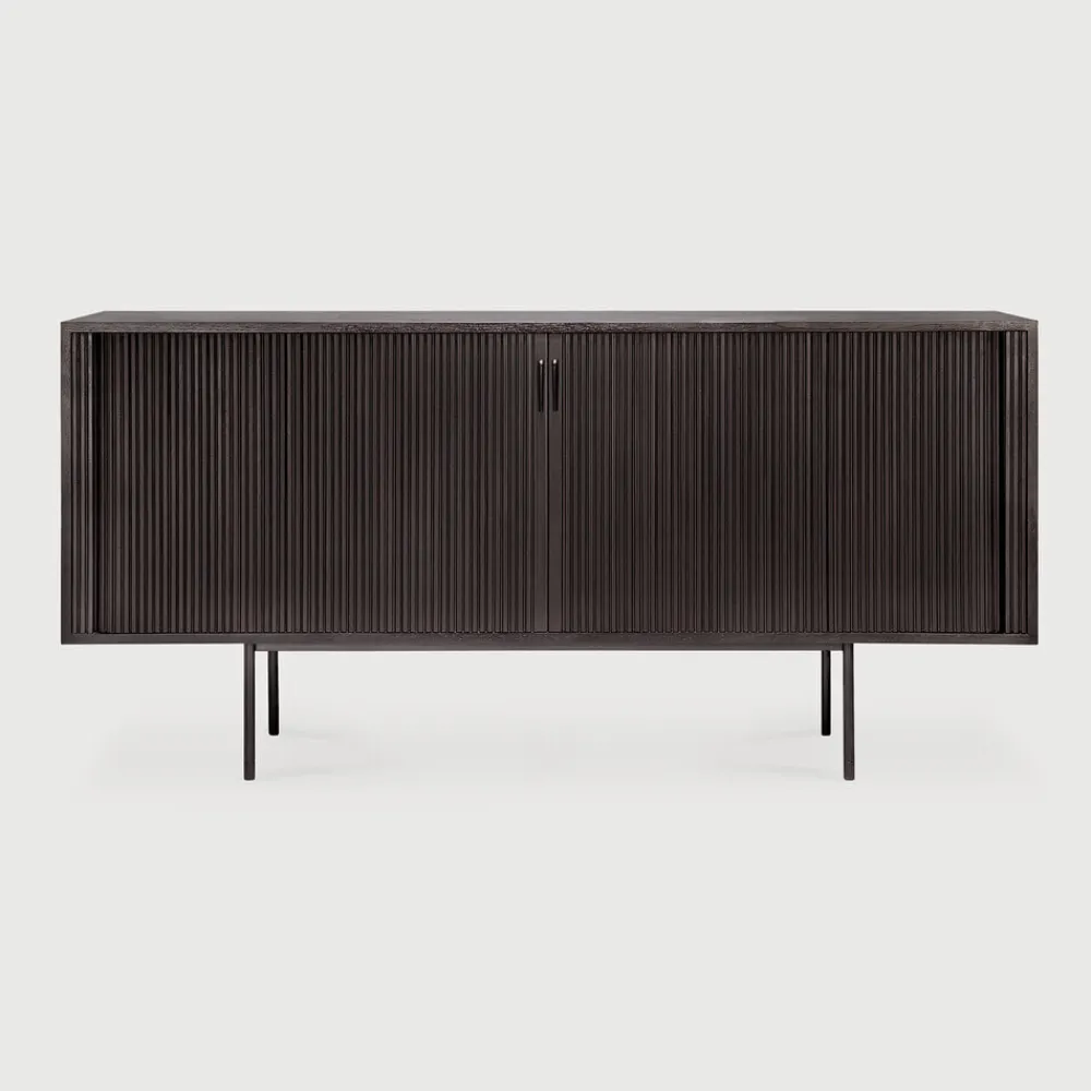 De Roller Max buffetkast biedt functionele opbergruimte in een opvallend design. Met schuifdeuren, verstelbare legplanken en naadloos geïntegreerde handgrepen benadrukt dit meubel het geritmeerde houten effect van de collectie op prachtige wijze. Het resultaat is een elegant en verfijnd item voor zowel residentiële als commerciële ruimtes. Ontworpen door Alain van Havre.
