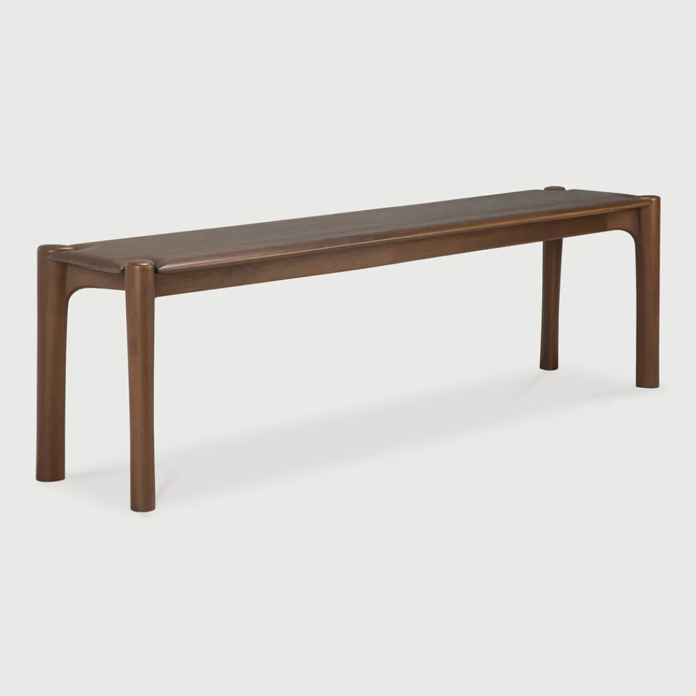 De PI collectie eert het ontwerp van de natuur, door de kracht, de rondingen en lijnen te behouden, zoals de natuur het bedoeld heeft. Interessante vormen worden ontdekt in deze slanke en stijlvolle, gepolijste doch onvolmaakte afwerking. Elk PI stuk wordt met de hand afgewerkt om ervoor te zorgen dat het individuele karakter van het hout wordt gerespecteerd. De PI bank past goed bij de PI eettafel, maar staat ook stijlvol op zichzelf in een hal.
